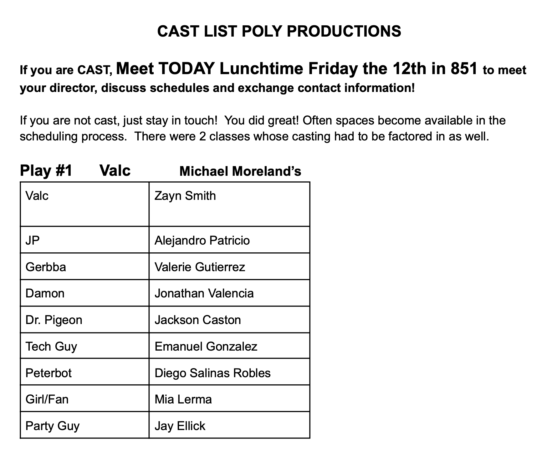 Leading actors will also primarily be cast from Advanced Class. We will announce outside auditions for supporting roles at the end of February. Student directors from each of the six selected shows will hold cold readings from the script, then post their cast list.